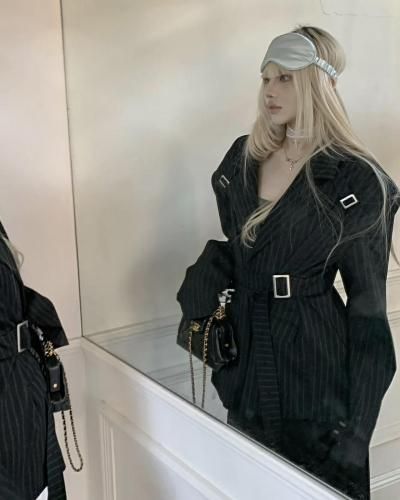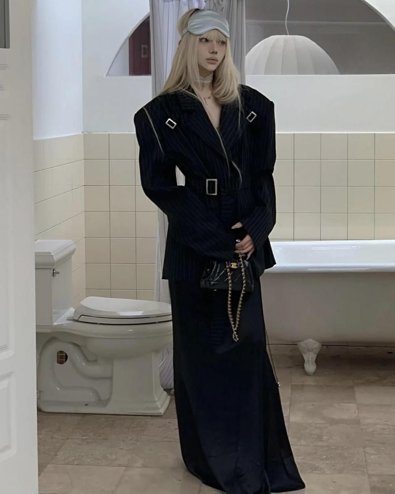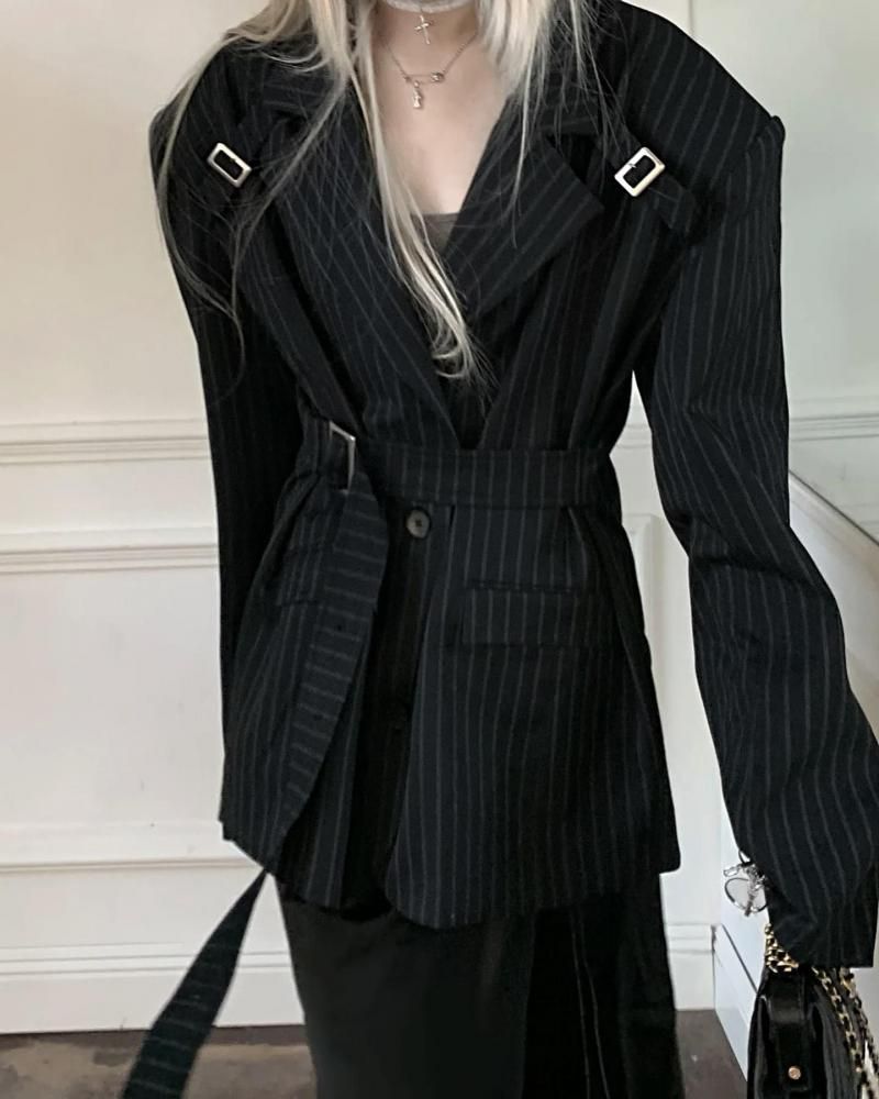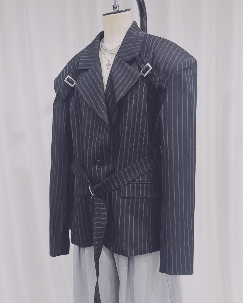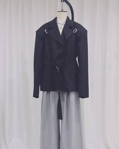 Rase le sol Jacket Striped Oversized Blazer with Detachable Waist Tie レイスルソル オーバーサイズ デタッチャブル タイ ジャケット