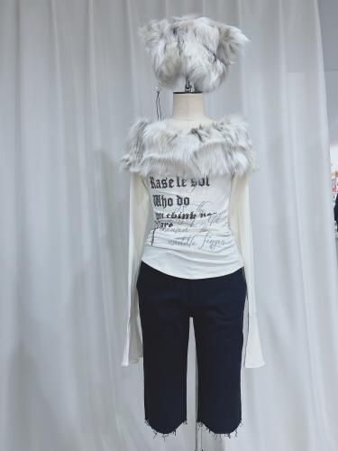 Rase le sol Off-Shoulder Faux Fur Top レイスルソル オフショルダ ーファー トップ