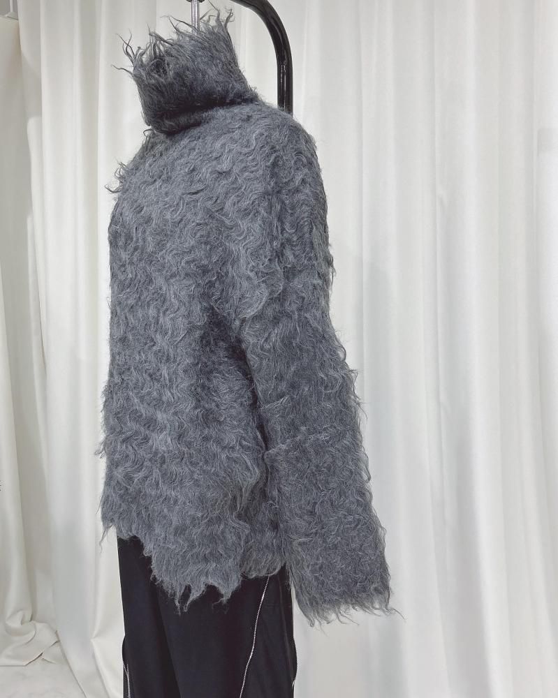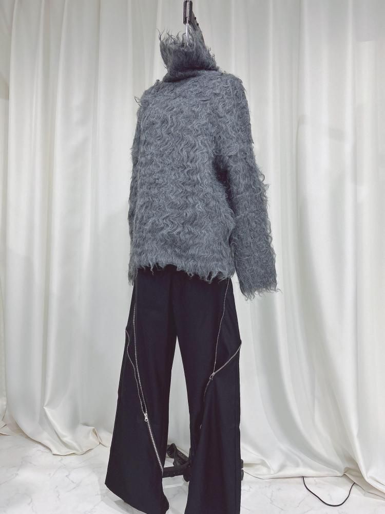 Determ Open-Back Shaggy Turtleneck Knit デターム オープンバック シャギー タートルネック ニット