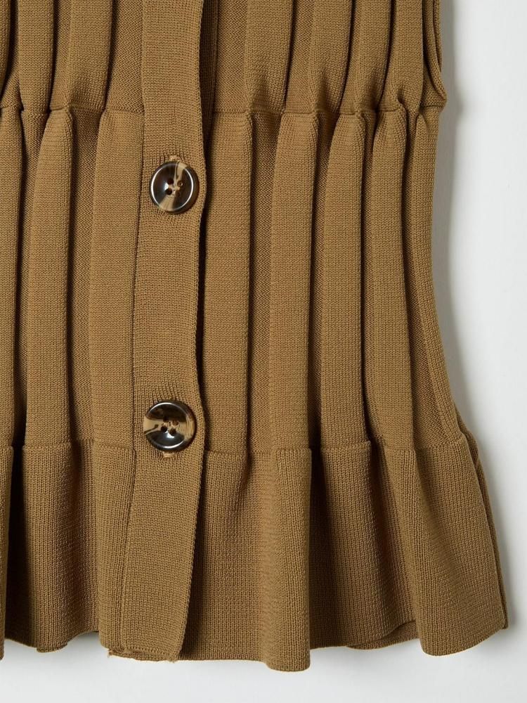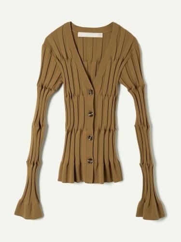 格子状に切り替えながらリブで編み立てることで、ユニークなねじれとフィット感を持ち合わせたコンシャスなニットカーディガン。