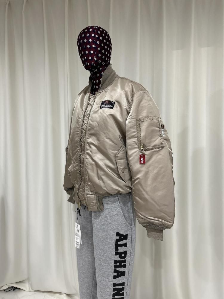 フロント、アームにはALPHA INDUSTRIES アルファインダストリーズのジップトップ。