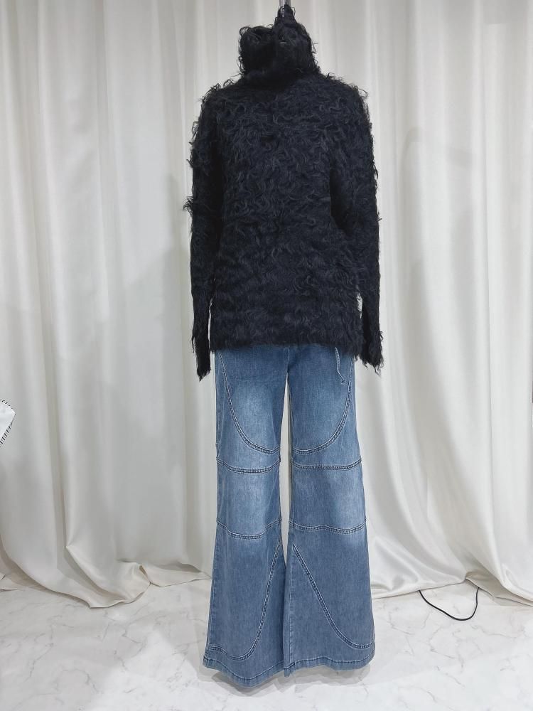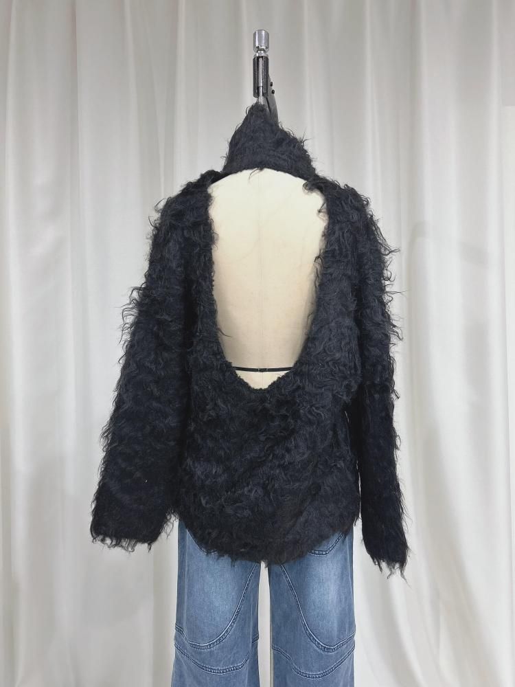 Determ Open-Back Shaggy Turtleneck Knit デターム オープンバック シャギー タートルネック ニット