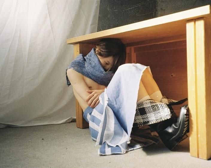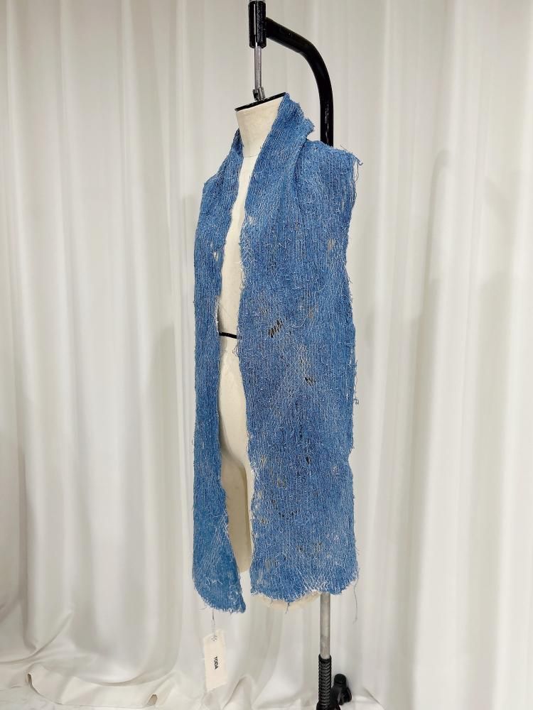 denim糸を解き、一から構築したハンドメイドデニムスカーフ。